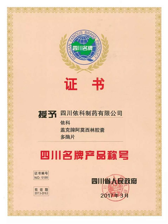 公司高度重视品牌战略,依法注册了“盖克”、“蜀中”、“三星堆”、“阿莫锋”、“益善源”、“蓉通”、“米兰体育”等108件注册商标,1999年“盖克”、2003年“蜀中”、2007年“三星堆”被认定为德阳市知名商标,2001年“盖克”、2004年“蜀中”被认定为四川省著名商标, 2008年“盖克”商标被国家工商行政管理总局认定为“中国驰名商标”。2017年3月,公司盖克牌、米兰体育牌阿莫西林胶囊和多酶片被四川省人民政府授予四川名牌产品称号。2016年,公司实现营业收入66373万元,利税7600万元;2017年,公司实现营业收入75045万元,利税7572万元。公司2017年被命名为德阳市第七批院士专家工作站,2016-2018连续三年被德阳市人民政府确定为重点龙头企业。